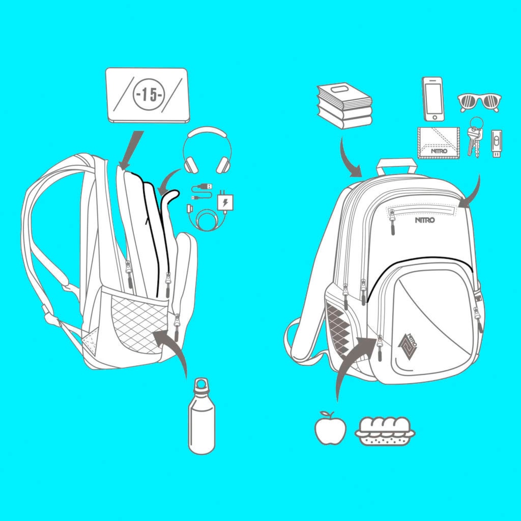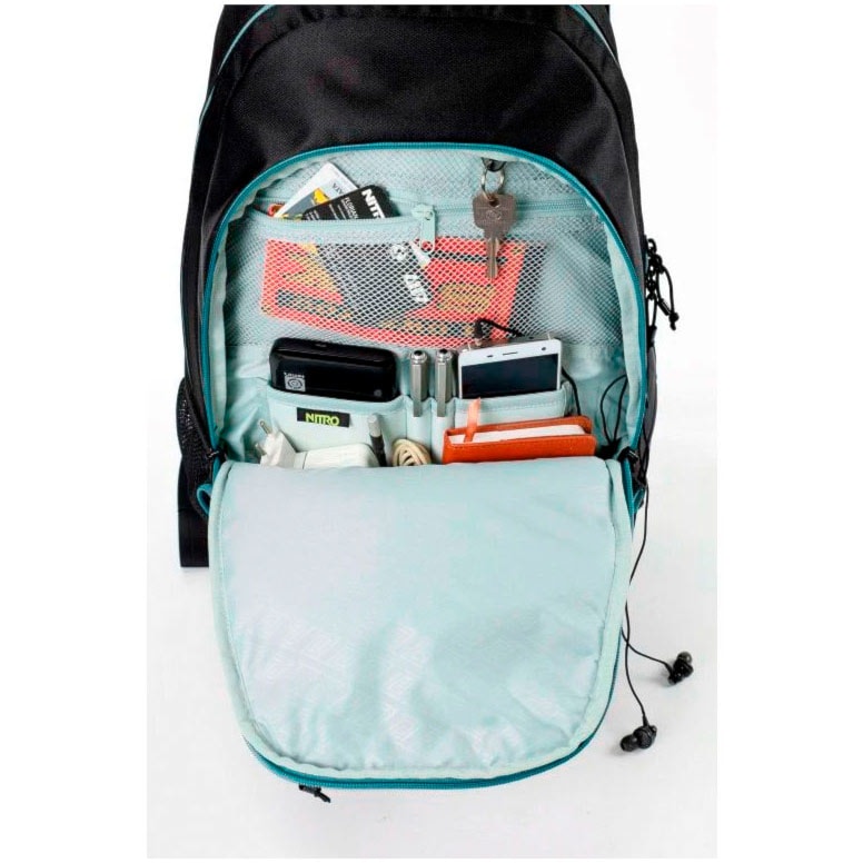 Nitro Stash je priestranný batoh ideálny do školy či do mesta, je vybavený polstrovanou komorou na 15" notebook a chladiacim vreckom na desiatu či nápoj. Batoh ďalej obsahuje fleecom vystlané vrecko na slnečné okuliare, vrecko s organizérom a bočné sieťované a zipsové vrecká.