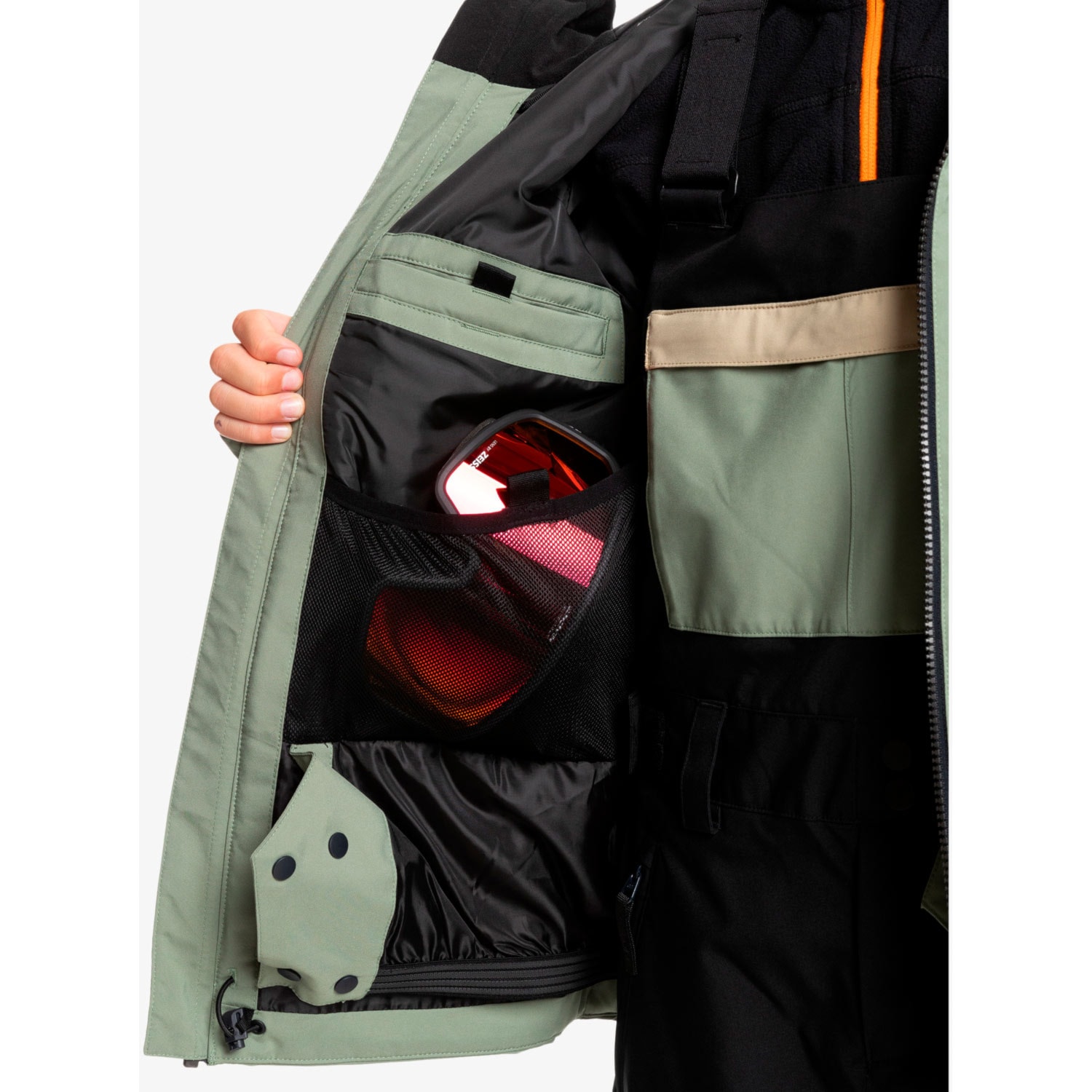 Bundy na snowboard sú z vnútornej strany tiež vybavené tzv. snowcatcherom. To je pás, ktorý chráni telo pred snehom a vetrom. Zapína sa na cvoky a u niektorých búnd ho môžeš odopnúť. Aby sa nevyhŕňal, je zospodu potiahnutý gumovými prúžkami. Dnes už sú na snowcatcheroch zakomponované pútka, ktoré je možné pripnúť k nohaviciam. Snehu nabalenému na chrbte pod bundou odzvonilo!