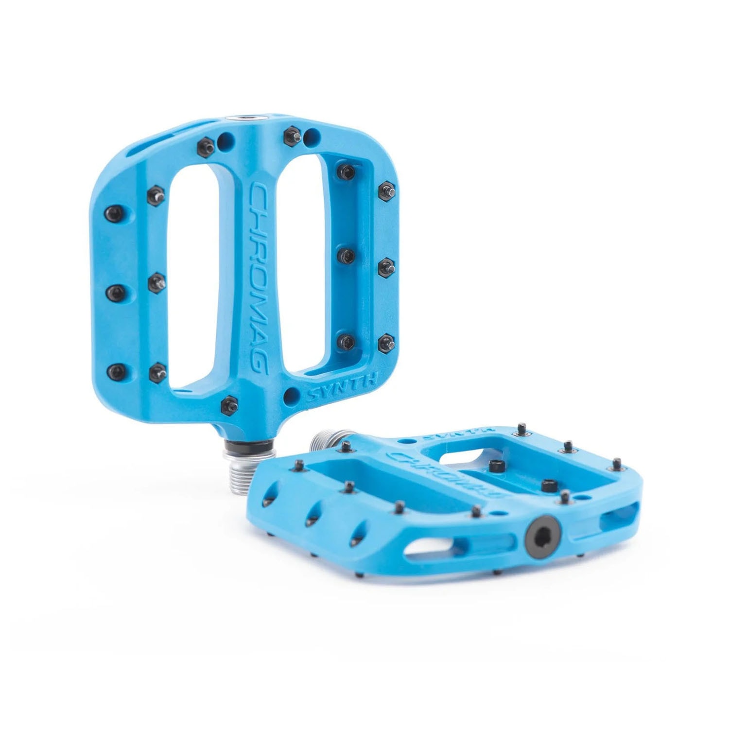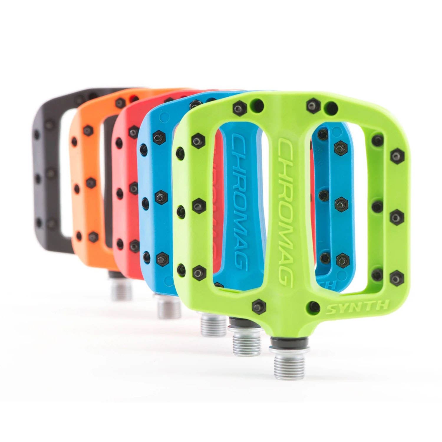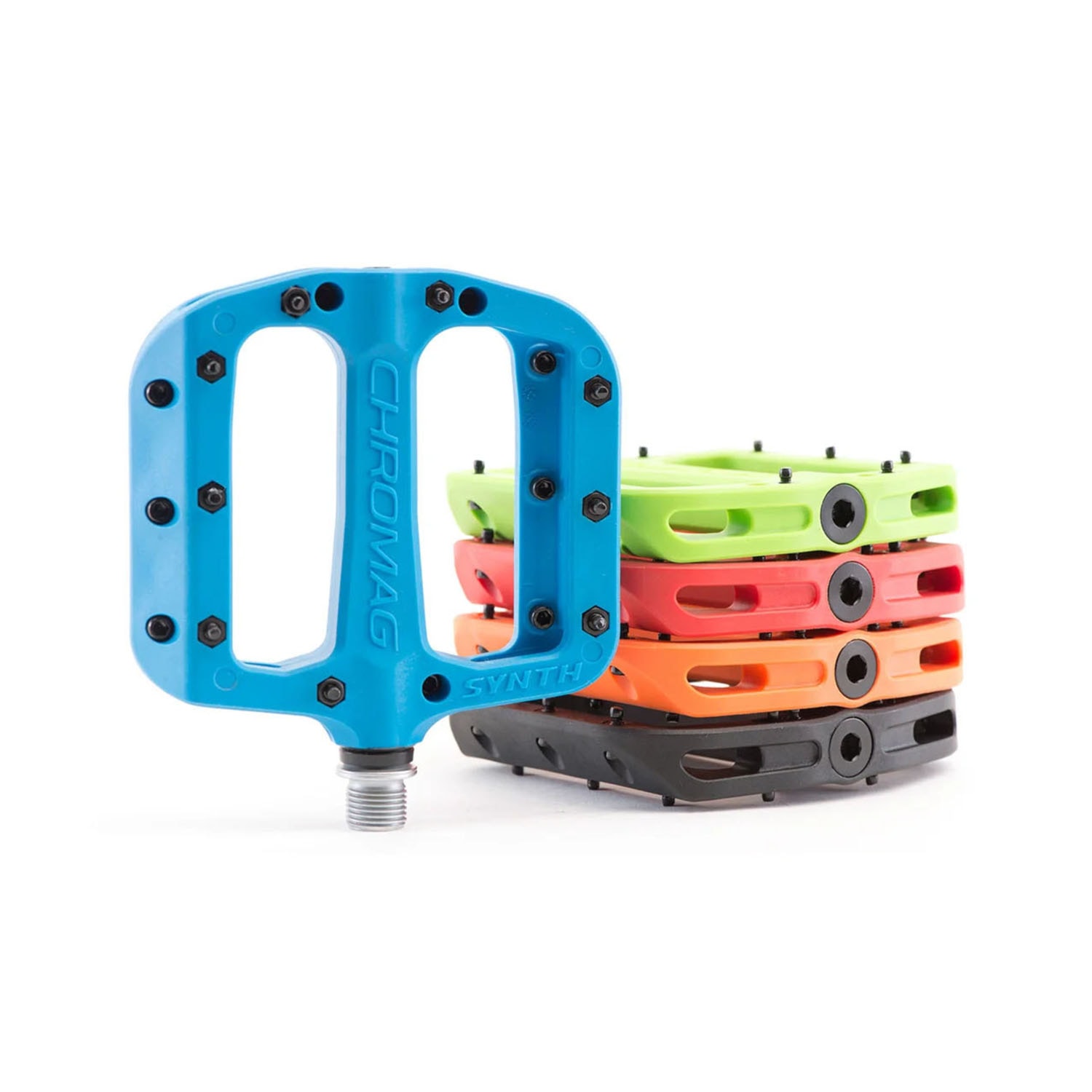Pedále Chromag Synth predstavujú veľa muziky za málo peňazí. Platforma zo vstrekovanej zmesi polykarbonátu a nylonu prispieva k ľahkosti, je odolná a vybavená pinmi s nastaviteľnou dĺžkou. Srdcom pedála je kvalitný osový systém G3 z ocele. S týmito pedálmi nešliapneš vedľa, o tom žiadna, napriek tomu ťa čaká neľahké rozhodnutie – po akej farbe siahneš?
