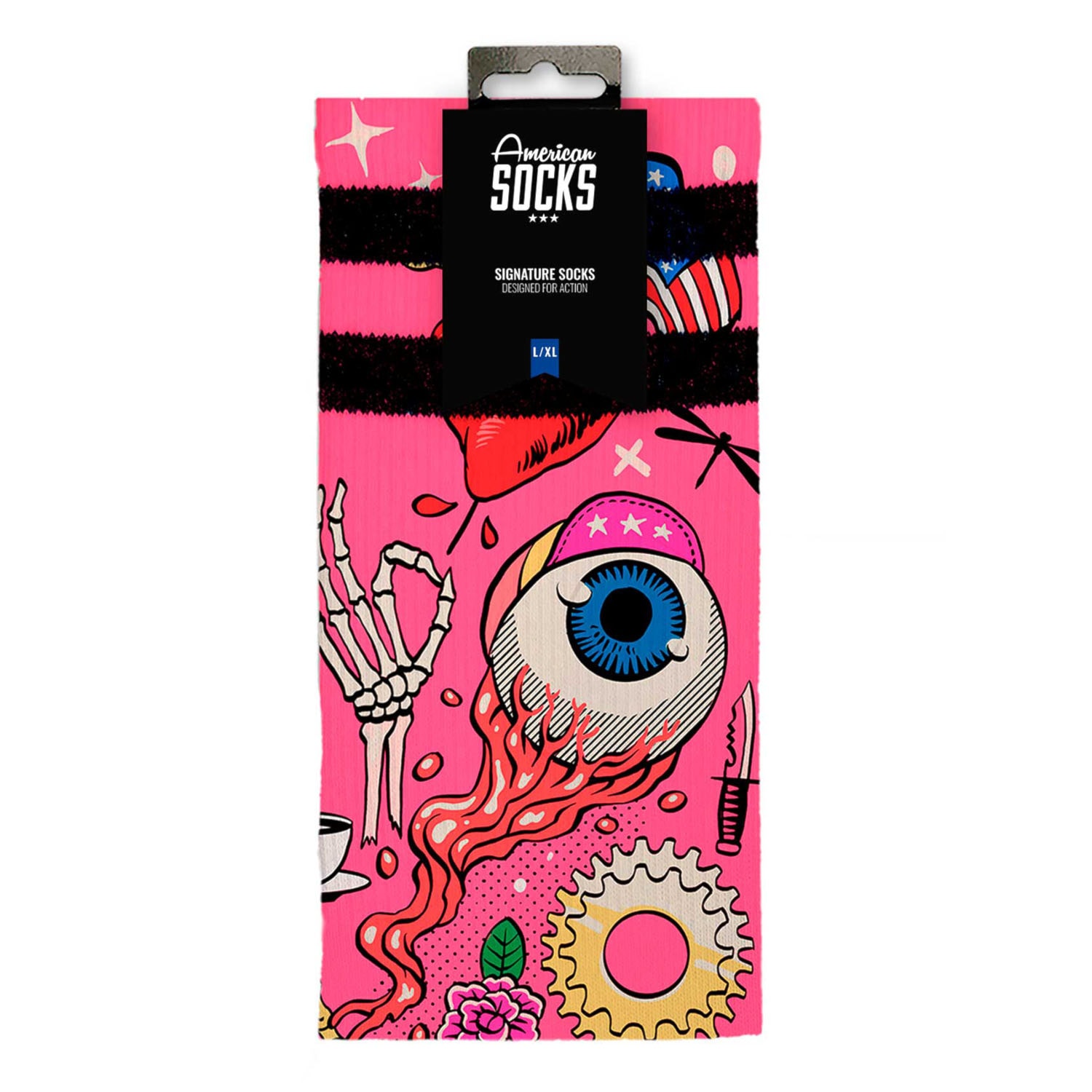 Predstavujeme ti ponožky, ktoré prepájajú slobodného ducha boardových športov a alternatívnu kultúru. American Socks sú stvorené na akciu a výdrž. Technické materiály spolu so zosilnenou pätou, špičkou a plochou pod chodidlom zaistia komfort po celý deň, zatiaľ čo unikátny dizajn dokonale podčiarkne tvoj životný štýl. Neboj sa prejaviť svoju kreativitu, buď trochu rebel a oživ svoje outfity ponožkami, z ktorých je ťažké spustiť oči!