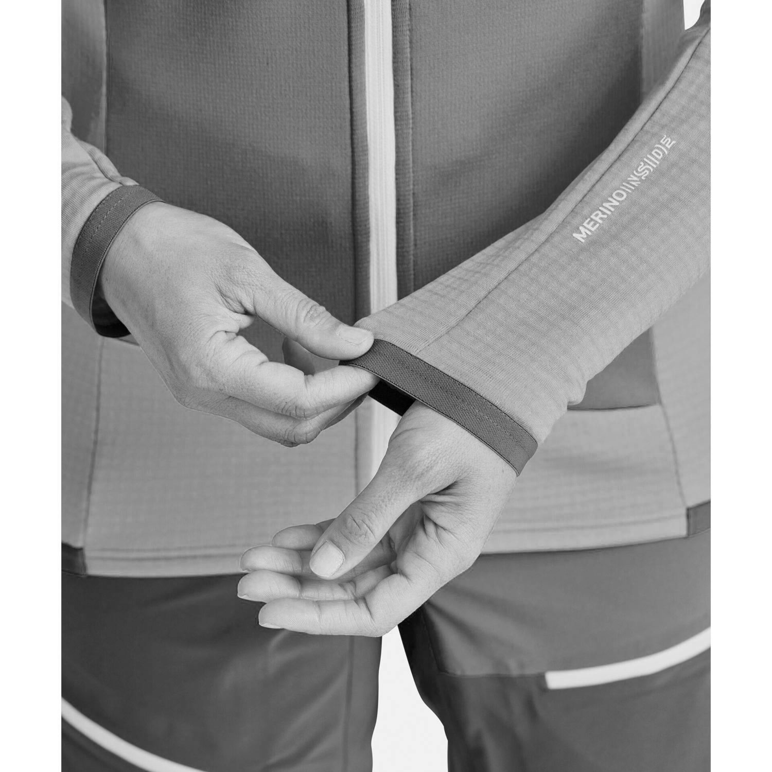 Hlavný materiál s merino vlnou má špeciálnu wafflovú štruktúru, ktorá umožňuje únik vlhkosti od tela a zároveň udržuje teplo. Na exponovaných miestach, ako sú ramená, hrudník alebo hlava, je umiestnená druhá vrstva Merino fleecu, ktorý dodáva extra ochranu pred vetrom a chladom. Všadeprítomná vlna je pri Ortovoxe samozrejmosťou – znamená nielen komfort, ale aj reguláciu tepla a vlhkosti, neutralizáciu zápachu a rýchloschnúce vlastnosti. Tak stav na vrstvy, na ktoré je spoľah.