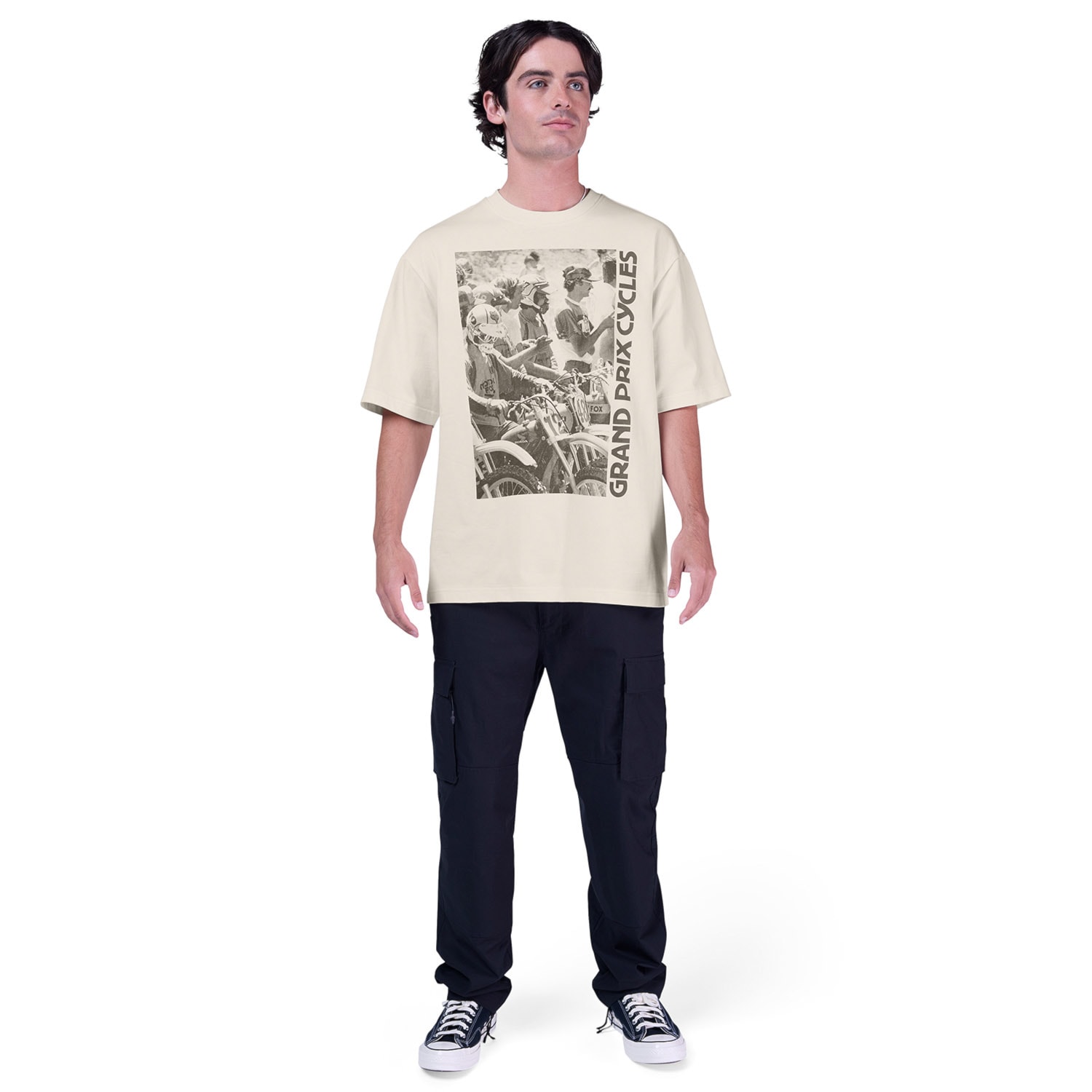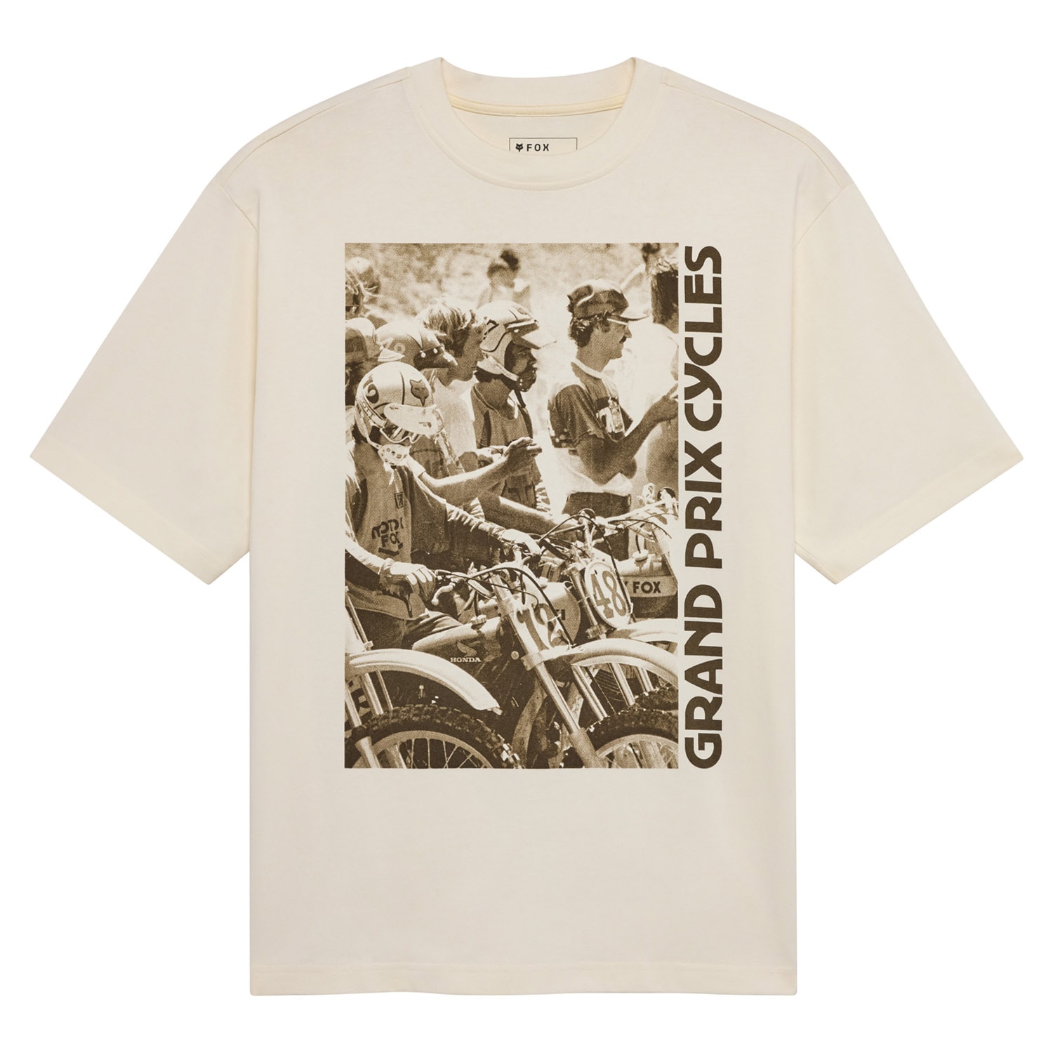 Kolekcia Circa 74 je založená na moderných siluetách, kvalitných materiáloch a ikonických grafických motívoch, ktoré ctia odkaz minulosti. Toto oversized tričko je oslavou Grand Prix Cycles, miesta, kde značka Fox v roku 1974 začínala. Mäkký materiál, vintage motocyklová grafika a moderný štýl. Skrátka must have kúsok pre každého, kto chce uctiť kúsok histórie svojho obľúbeného brandu.